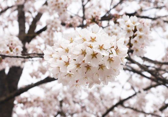 Somei yoshino cherry blossom is the kind of blossom that Japan is most famous for. Its petals are incredibly light in colour, and its flowers are gathered in balls.