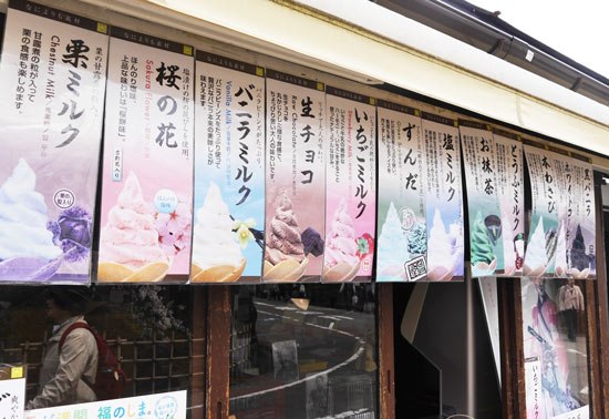Also, visitors passing through the north gate of the castle to travel between Tsurukan and Tsurugajo Castle will pass by an ice cream shop with loads of interesting flavours of ice cream including: