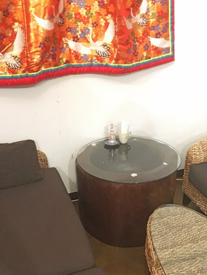 The café is filled with wonderful, vintage pieces of furniture, many of which have been recycled in unique ways, such as tables are made of old doors and wooden basins used for pounding mochi (rice cakes).