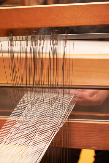 When you arrive, the looms are already set up ready with the fibers of ramie separated into a “top” and “bottom” layer. You control the loom using pedals, which you alternately press down to bring the two layers of ramie fibers together to meet at the middle.